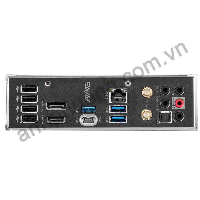 | BACK PANEL PORTS | USB 2.0 DisplayPort USB 3.2 Gen 1 5Gbps Type-A 2.5G LAN Port Wi-Fi / Bluetooth Antenna HD Audio Connectors HDMI USB 3.2 Gen 2x2 20Gbps Type-C USB 3.2 Gen 1 5Gbps Type-A Optical S/PDIF OUT |