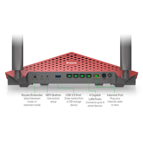 | Advanced Features | MU-MIMO SmartConnect Guest zone mydlink SharePort™ web access Multi-language web setup wizard Advanced AC SmartBeam Dual active firewall Network Address Translation (NAT) Stateful Packet Inspection (SPI) VPN Passthrough (PPTP/L2TP/IPsec) Advanced QoS QuickVPN - L2TP over IPsec mydlink Features |